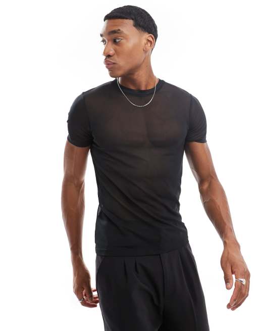 ASOS DESIGN - T-shirt moulant en tulle - Noir