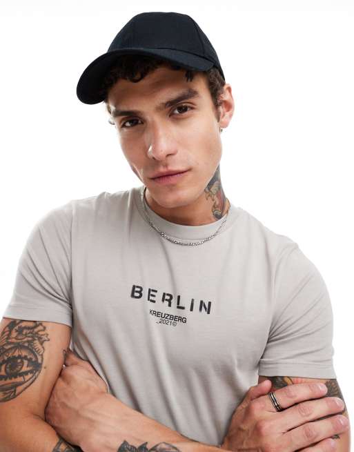 ASOS DESIGN - T-shirt moulant imprimé à l'avant - Gris