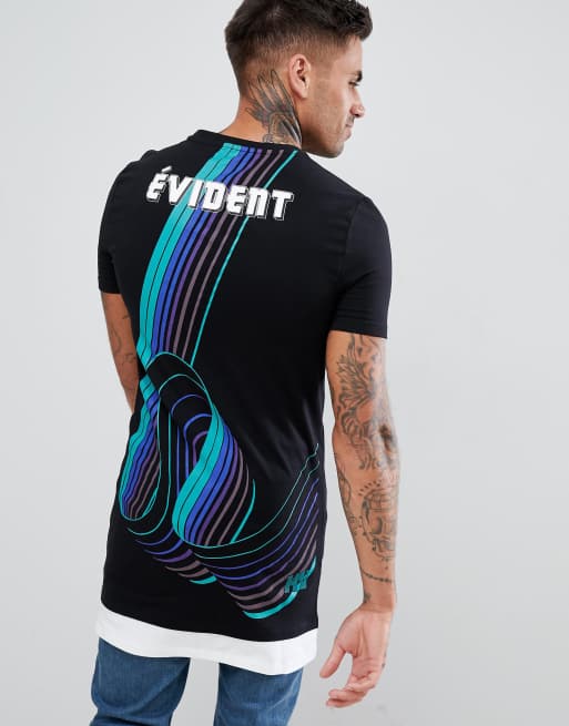 ASOS DESIGN - T-shirt moulant très long avec imprimé dans le dos et ourlet allongé