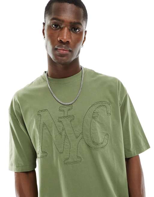 ASOS DESIGN - T-shirt oversize à appliqué effet usé sur le devant - Kaki