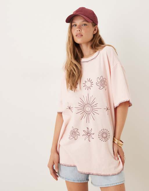 ASOS DESIGN - T-shirt oversize à broderie soleil - Rose