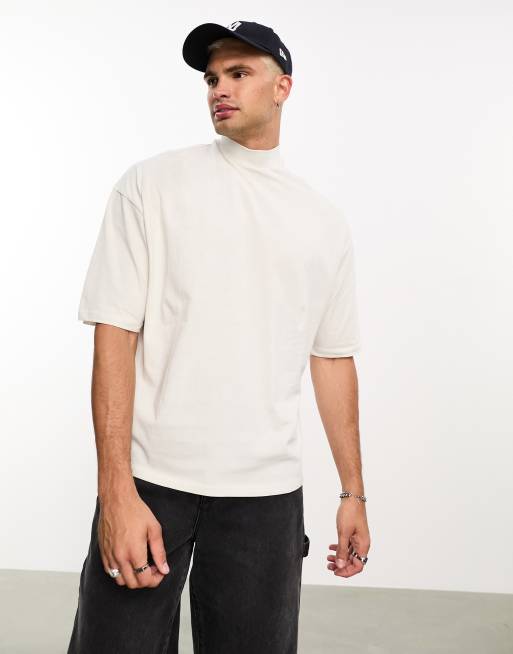 ASOS DESIGN - T-shirt oversize à col montant - Blanc
