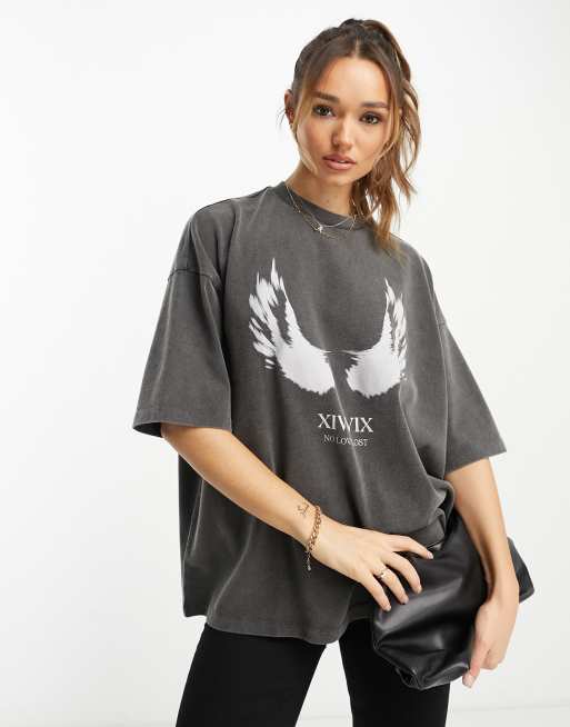 ASOS DESIGN - T-shirt oversize à imprimé ailes - Anthracite délavé