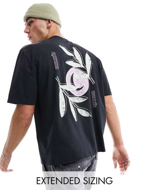 ASOS DESIGN - T-shirt oversize à imprimé au dos - Noir fleuri