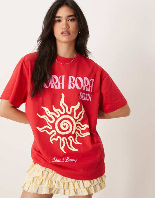 ASOS DESIGN - T-shirt oversize à imprimé Bora Bora - Rouge