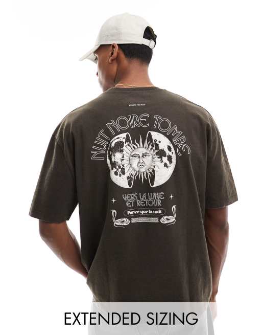 ASOS DESIGN - T-shirt oversize à imprimé céleste au dos - Kaki délavé