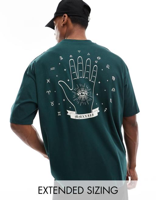 ASOS DESIGN - T-shirt oversize à imprimé céleste au dos - Vert profond