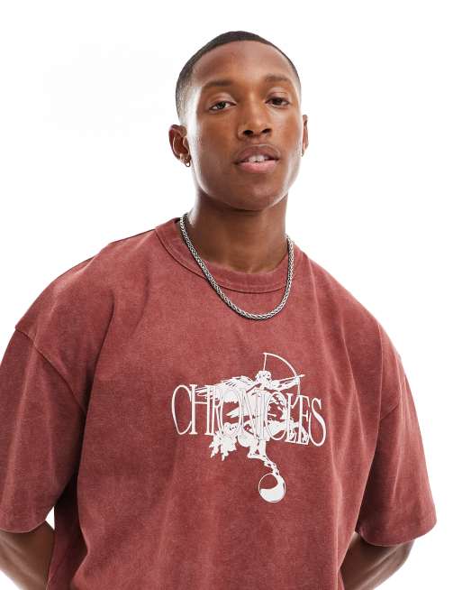 ASOS DESIGN - T-shirt oversize à imprimé chérubin devant - Marron délavé