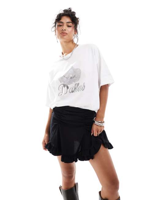 ASOS DESIGN - T-shirt oversize à imprimé Dallas - Ivoire
