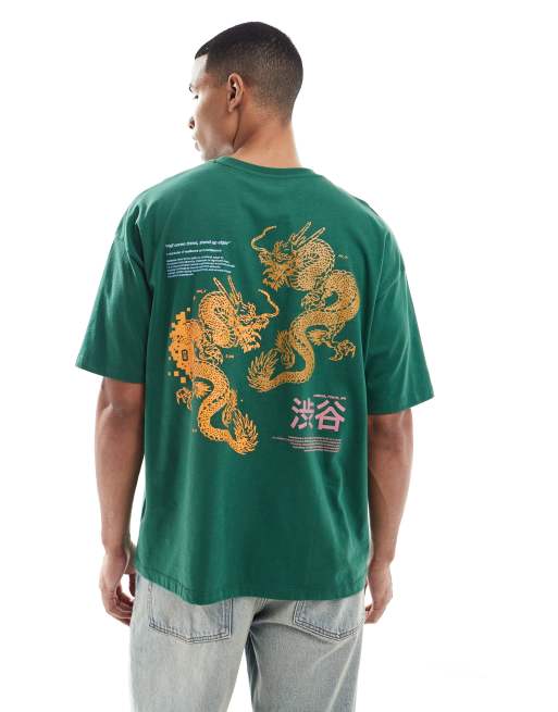 ASOS DESIGN - T-shirt oversize à imprimé dragon - Vert