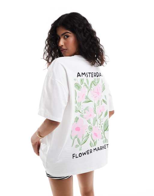 ASOS DESIGN - T-shirt oversize à imprimé fleurs abstraites - Blanc