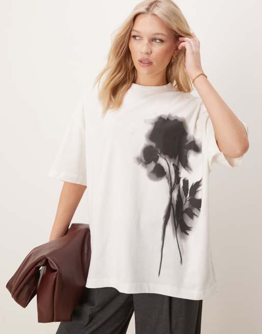 ASOS DESIGN - T-shirt oversize à imprimé fleurs flouté - Crème