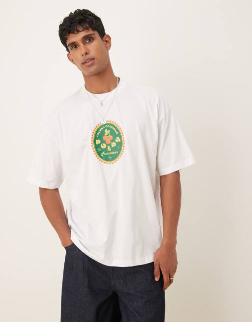 ASOS DESIGN - T-shirt oversize à imprimé fruits - Blanc