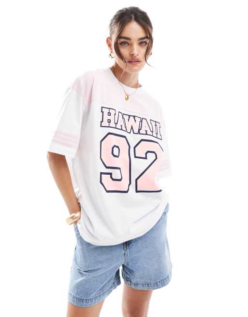 ASOS DESIGN - T-shirt oversize à imprimé Hawaii style sport - Blanc