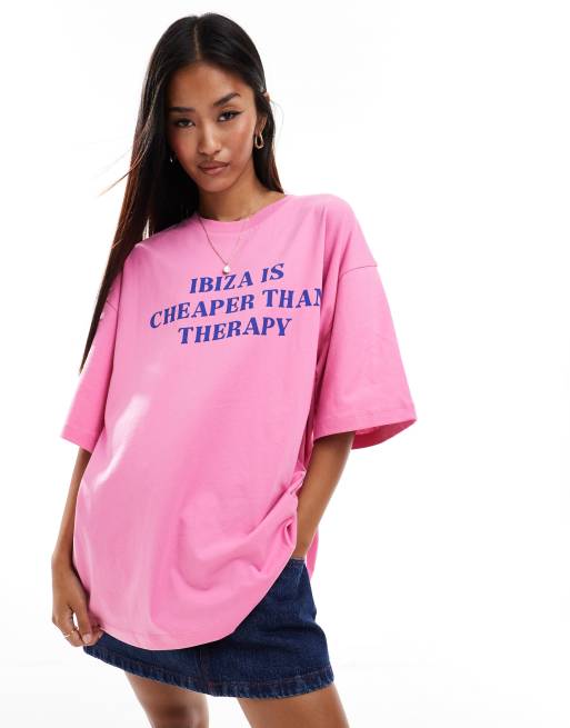 ASOS DESIGN - T-shirt oversize à imprimé Ibiza - Rose