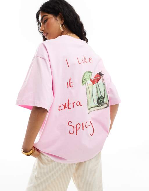 ASOS DESIGN - T-shirt oversize à imprimé margarita - Rose