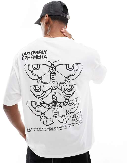 ASOS DESIGN - T-shirt oversize à imprimé papillon au dos - Blanc.