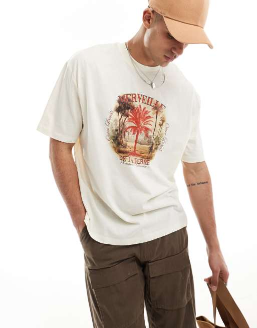 ASOS DESIGN - T-shirt oversize à imprimé paysage sur la poitrine - Blanc cassé