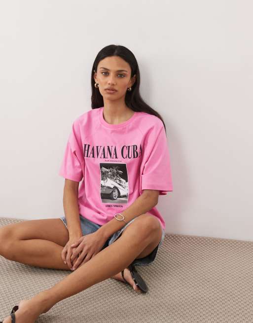 ASOS DESIGN - T-shirt oversize à imprimé photo Cuba - Rose