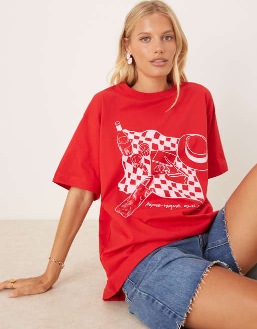 ASOS DESIGN - T-shirt oversize à imprimé pique-nique - Rouge