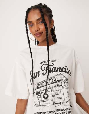 ASOS DESIGN - T-shirt oversize à imprimé San Francisco - Lait de coco