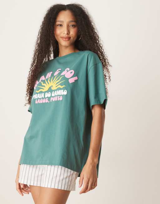 ASOS DESIGN - T-shirt oversize à imprimé soleil - Vert