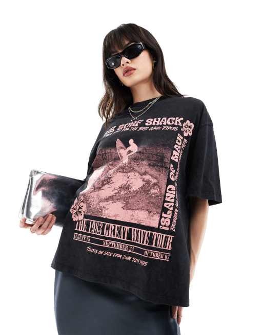 ASOS DESIGN - T-shirt oversize à imprimé Surf Shack - Anthracite délavé