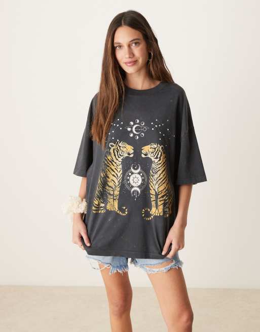 ASOS DESIGN - T-shirt oversize à imprimé tigres - Anthracite délavé