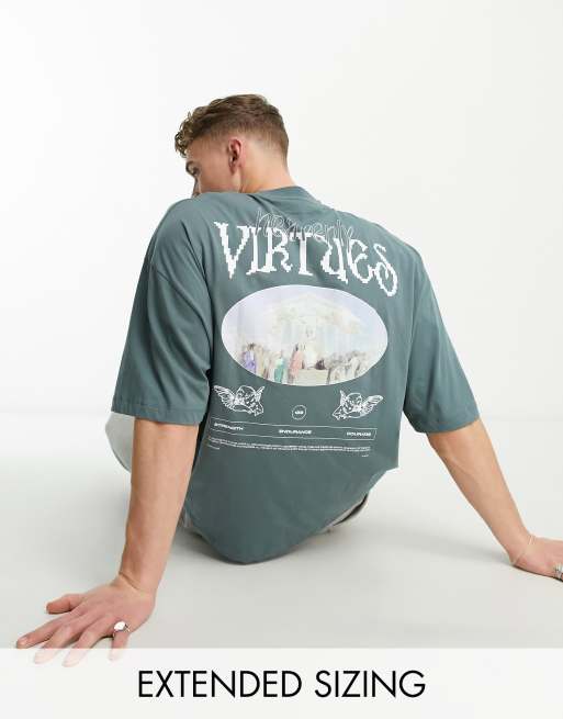 ASOS DESIGN - T-shirt oversize à imprimé Virtues - Vert