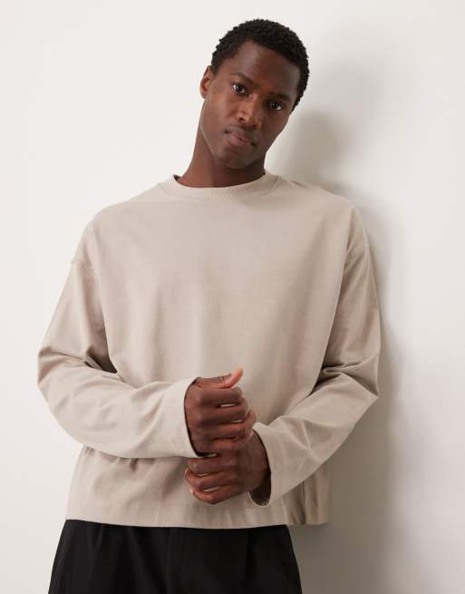 ASOS DESIGN - T-shirt oversize à manches longues coupe carrée en tissu épais - Taupe