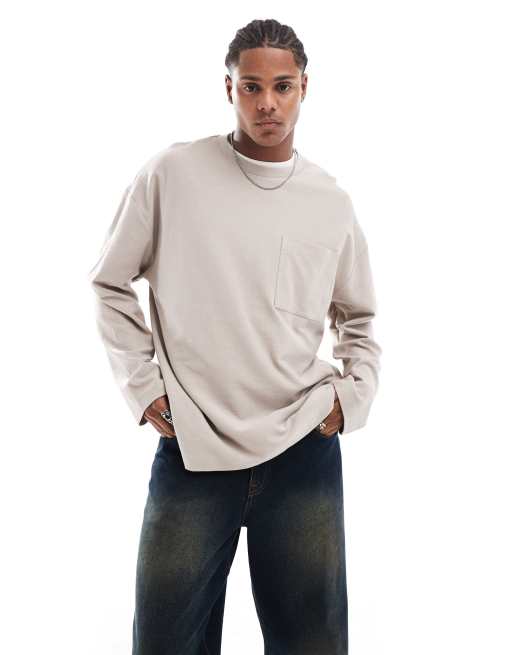 ASOS DESIGN - T-shirt oversize à manches longues en maille bouclée - Taupe