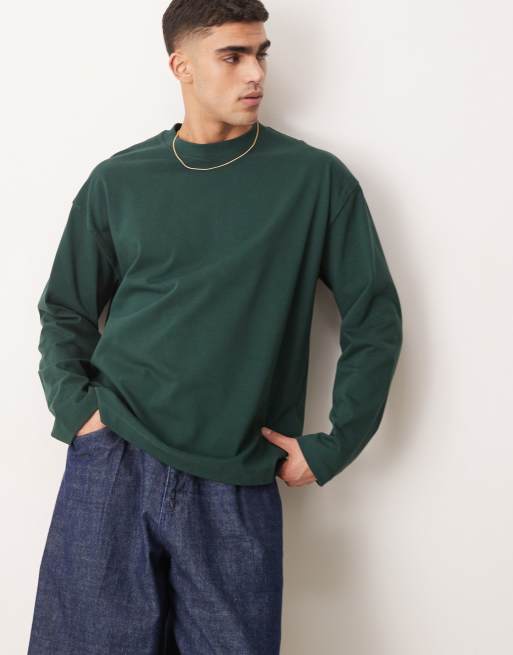 ASOS DESIGN - T-shirt oversize à manches longues en tissu épais - Vert foncé
