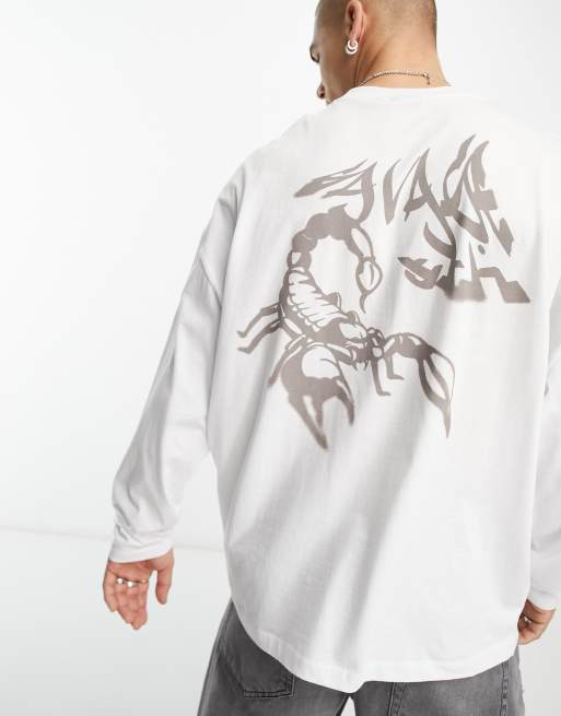 ASOS DESIGN - T-shirt oversize à manches longues et imprimé scorpion - Blanc