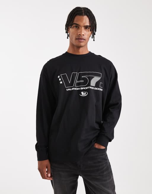 ASOS DESIGN - T-shirt oversize à manches longues et imprimé style sport - Noir