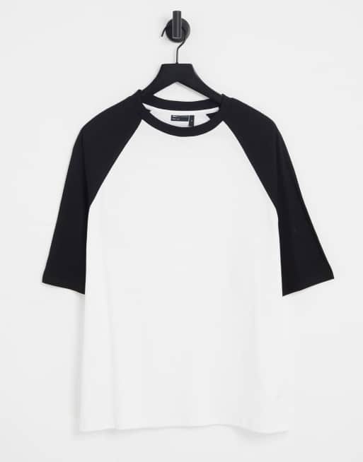 ASOS DESIGN - T-shirt oversize à manches raglan noires contrastantes - Blanc