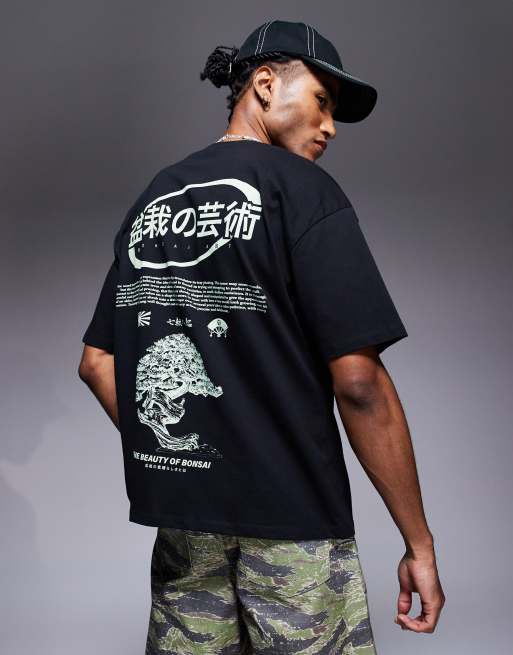 ASOS DESIGN - T-shirt oversize à motif bonsaï - Noir