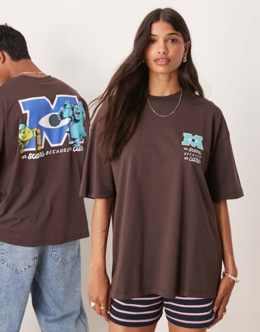 ASOS DESIGN - T-shirt oversize à motif Disney Pixar Monsters Inc. - Marron