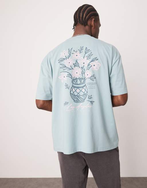 ASOS DESIGN - T-shirt oversize à motif floral - Bleu clair