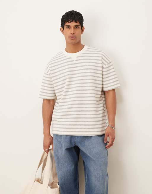ASOS DESIGN - T-shirt oversize à rayures en tissu épais - Écru