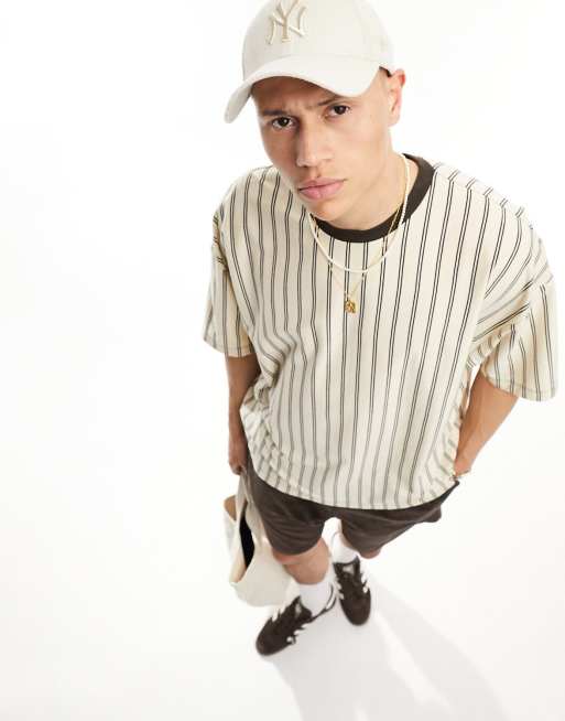ASOS DESIGN - T-shirt oversize à rayures verticales - Beige