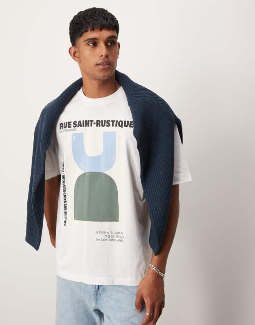 ASOS DESIGN - T-shirt oversize avec imprimé artistique abstrait sur le devant - Blanc