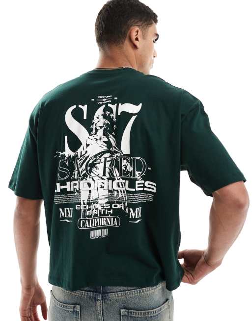 ASOS DESIGN - T-shirt oversize avec imprimé au dos - Vert foncé