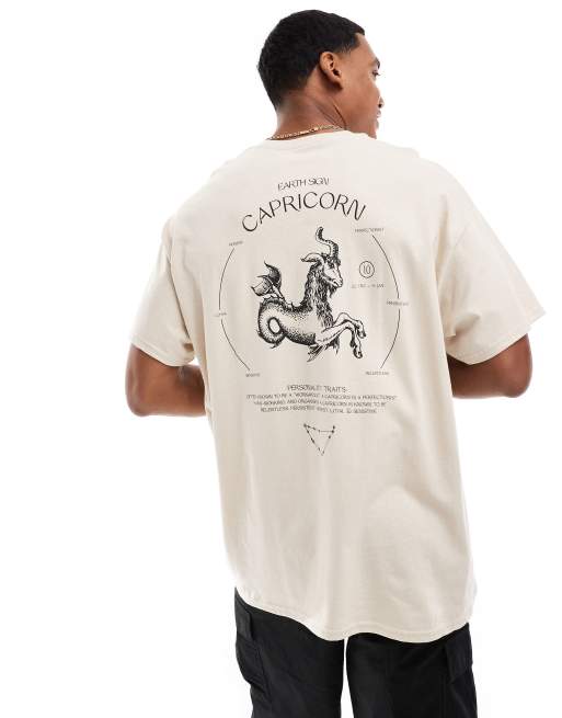 ASOS DESIGN - T-shirt oversize avec imprimé Capricorne au dos - Beige