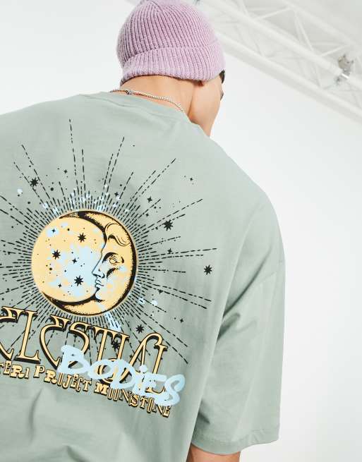 ASOS DESIGN - T-shirt oversize avec imprimé céleste sur le devant et au dos - Vert