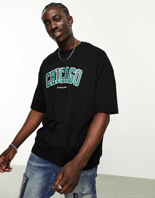 ASOS DESIGN - T-shirt oversize avec imprimé Chicago sur le devant - Noir