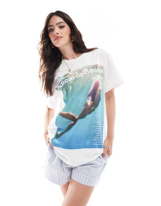 ASOS DESIGN - T-shirt oversize avec imprimé Dua Lipa sous licence - Blanc