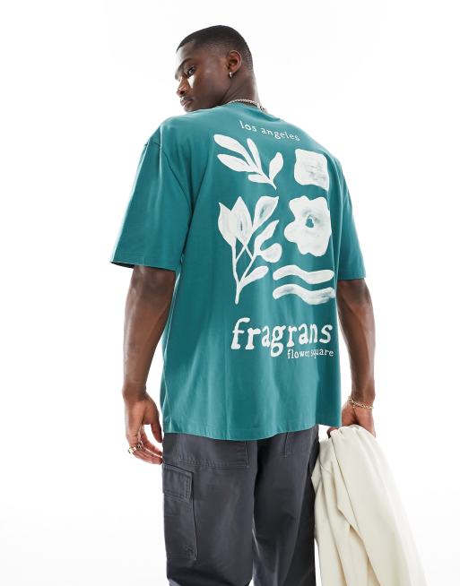 ASOS DESIGN - T-shirt oversize avec imprimé fleurs au dos - Vert foncé