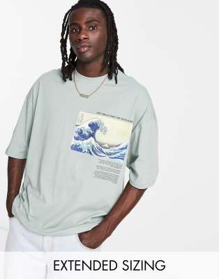 ASOS DESIGN - T-shirt oversize avec imprimé Great Wave of Kanagawa - Vert