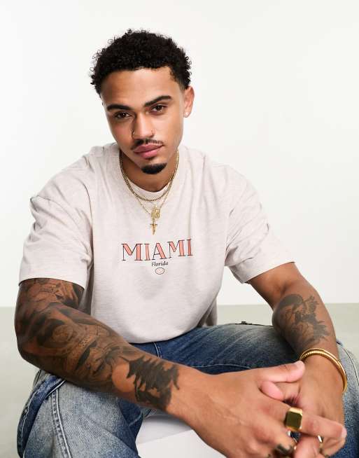 ASOS DESIGN - T-shirt oversize avec imprimé Miami sur le devant - Beige chiné