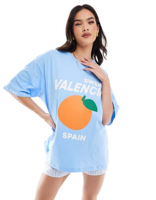 ASOS DESIGN - T-shirt oversize avec imprimé orange et Valencia - Bleu